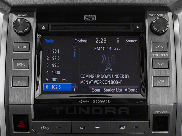 - Radio: Entune Audio Plus -inc: AM/FM/HD radio, CD player MP3/WMA playback capability, navigation, high-resolution 7" touch-screen display, auxiliary audio jack, USB 2.0 port, iPod connectivity and control, iTunes Tagging, traffic and weather, Bluetooth® hands-free phone capability, phone book access, voice recognition and music streaming, SIRIUSXM Satellite Radio, 90-day free trial