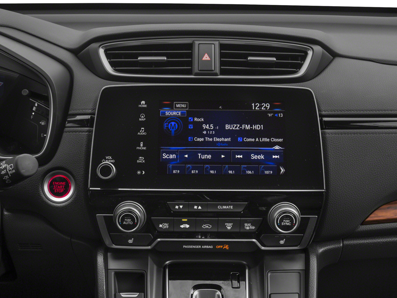 - Radio: AM/FM/HD/SiriusXM Audio System -inc: 330-Watts, 9 speakers including subwoofer, Honda satellite-linked navigation system w/voice recognition, HD digital traffic, turn-by-turn directions, 7" display w/high-resolution WVGA (800x480) electrostatic touch-screen, customizable feature settings, Bluetooth® streaming audio and HandsFreeLink, Pandora compatibility, Radio Data System (RDS), Speed-Sensitive Volume Control (SVC), USB audio interface w/1.0-amp port in center console, USB smartphone/audio interface w/1.5-amp port in center console, 12-volt power outlets (front and center console), HondaLink, Apple CarPlay/Android Auto, SMS text message function and 2.5-Amp charging ports in 2nd-row