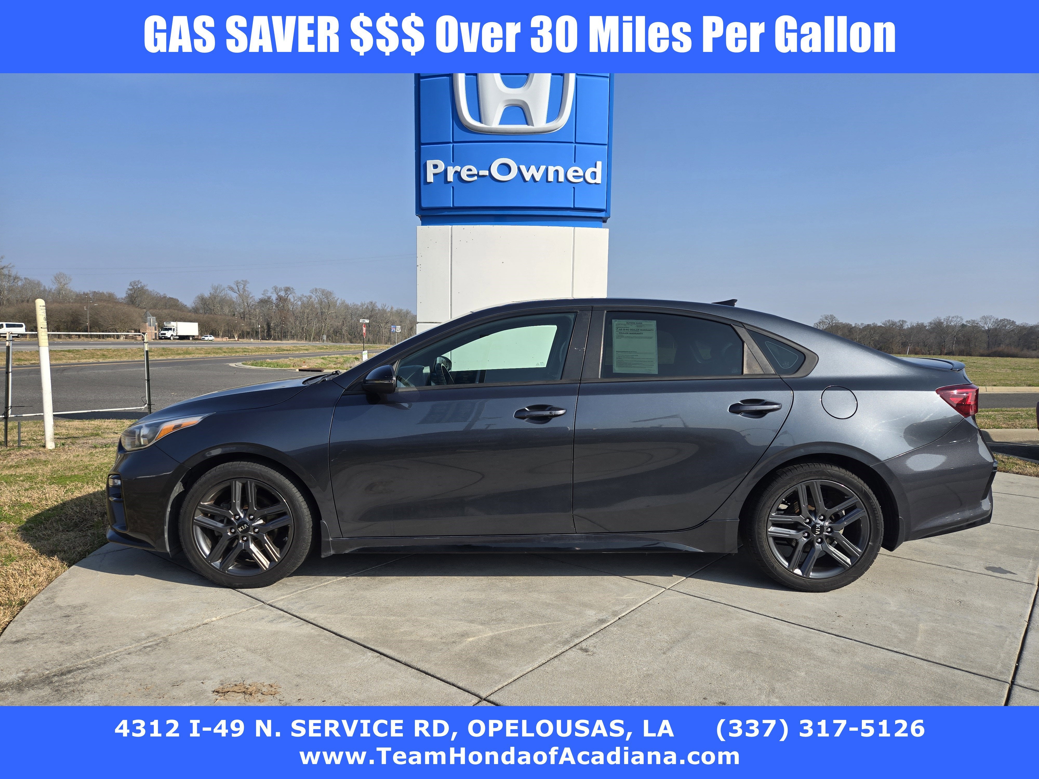 GRAVITY GRAY, CARPETED FLOOR MATS, Wireless Phone Connectivity, Window Grid Antenna, Variable Intermittent Wipers, Trunk Rear Cargo Access, Trip Computer, Transmission w/Driver Selectable Mode, Torsion Beam Rear Suspension w/Coil Springs, Tire Specific Low Tire Pressure Warning. This Kia Forte has a strong Regular Unleaded I-4 2.0 L/122 engine powering this Variable transmission.* Experience a Fully-Loaded Kia Forte GT-Line *Tire Mobility Kit, Strut Front Suspension w/Coil Springs, Streaming Audio, Smart Device Integration, Single Stainless Steel Exhaust w/Chrome Tailpipe Finisher, Side Impact Beams, Remote Releases -Inc: Mechanical Cargo Access and Mechanical Fuel, Remote Keyless Entry w/Integrated Key Transmitter, Illuminated Entry, Illuminated Ignition Switch and Panic Button, Rear Cupholder, Rear Cross-Traffic Collision Warning (RCCW), Rear Child Safety Locks, Radio w/Seek-Scan, Clock, Speed Compensated Volume Control, Steering Wheel Controls and Radio Data System, Proximity Key For Doors And Push Button Start, Power Rear Windows, Power Door Locks w/Autolock Feature, Power 1st Row Windows w/Driver 1-Touch Up/Down, Perimeter/Approach Lights, Perimeter Alarm, Passenger Seat, Outside Temp Gauge.* Visit Us Today *Live a little- stop by Team Honda of Acadiana located at 4312 I 49 S Service Rd, Opelousas, LA 70570 to make this car yours today!