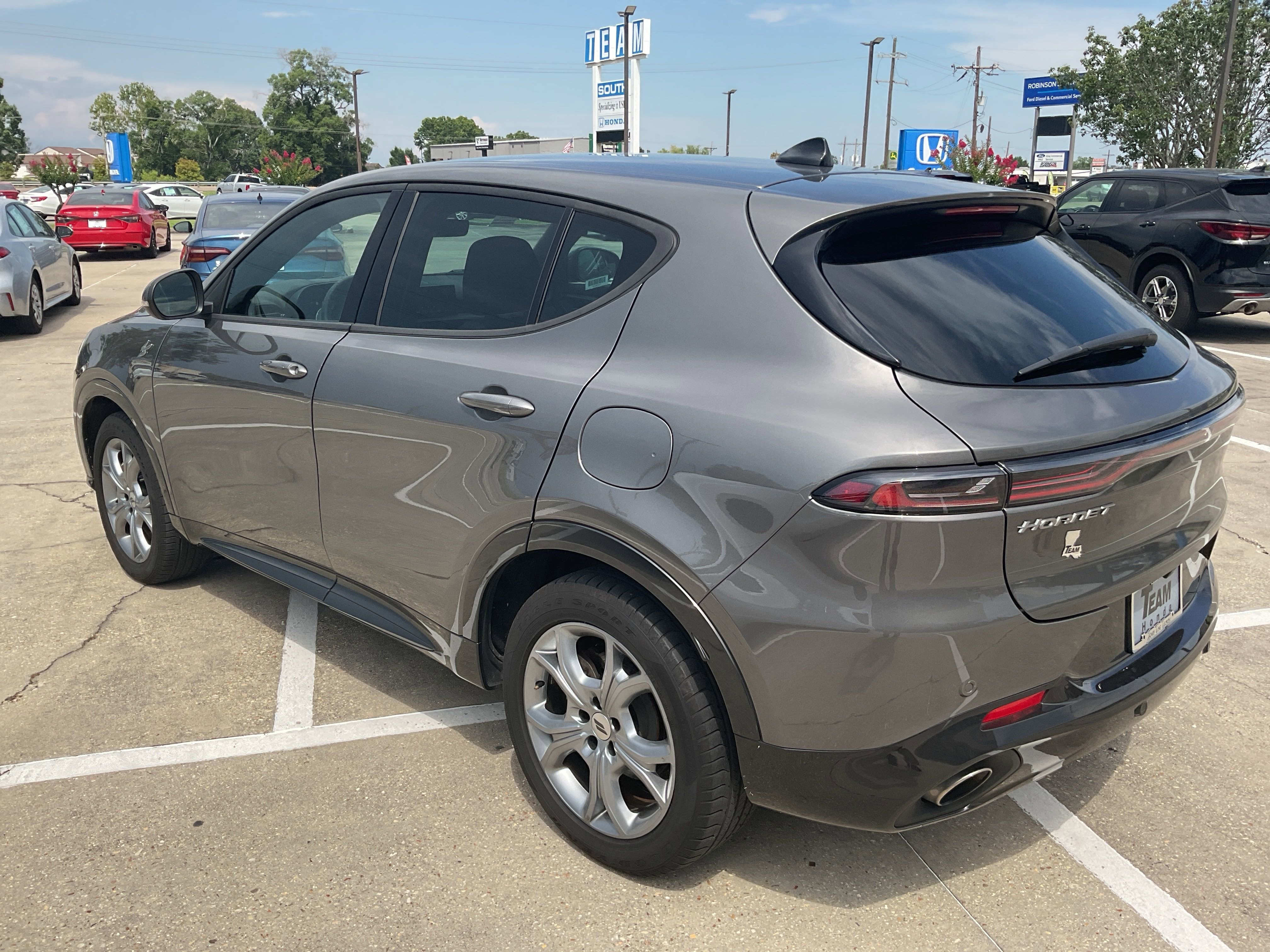 NORMAL DUTY SUSPENSION (STD), MANUFACTURER'S STATEMENT OF ORIGIN, Vinyl Door Trim Insert, Trip Computer, Transmission w/Driver Selectable Mode and AUTOSTICK Sequential Shift Control w/Steering Wheel Controls, Tires: 225/55R18 All Season, Tire Specific Low Tire Pressure Warning, Tire Mobility Kit, TBD Axle Ratio, Tailgate/Rear Door Lock Included w/Power Door Locks. This Dodge Hornet has a powerful Intercooled Turbo Gas/Electric I-4 1.3 L/81 engine powering this Automatic transmission.* Experience a Fully-Loaded Dodge Hornet R/T *Strut Rear Suspension w/Coil Springs, Strut Front Suspension w/Coil Springs, Streaming Audio, Side Impact Beams, Seats w/Leatherette Back Material, Rigid Cargo Cover, Remote Keyless Entry w/Integrated Key Transmitter, Illuminated Entry, Illuminated Ignition Switch and Panic Button, Regenerative 4-Wheel Disc Brakes w/4-Wheel ABS, Front Vented Discs, Brake Assist, Hill Hold Control and Electric Parking Brake, Redundant Digital Speedometer, Rear Cupholder, Rear Child Safety Locks, Rear Anti-Roll Bar, Rain Detecting Variable Intermittent Wipers, Radio w/Seek-Scan, Clock and Aux Audio Input Jack, Quasi-Dual Stainless Steel Exhaust w/Chrome Tailpipe Finisher, Proximity Key For Doors And Push Button Start, Power Rear Windows and Fixed 3rd Row Windows, Power Door Locks w/Autolock Feature, Power Adjust 8-Way Driver Seat, Power 4-Way Driver Lumbar Adjust.* Visit Us Today *Test drive this must-see, must-drive, must-own beauty today at Team Honda, 6363 Siegen Ln, Baton Rouge, LA 70809.