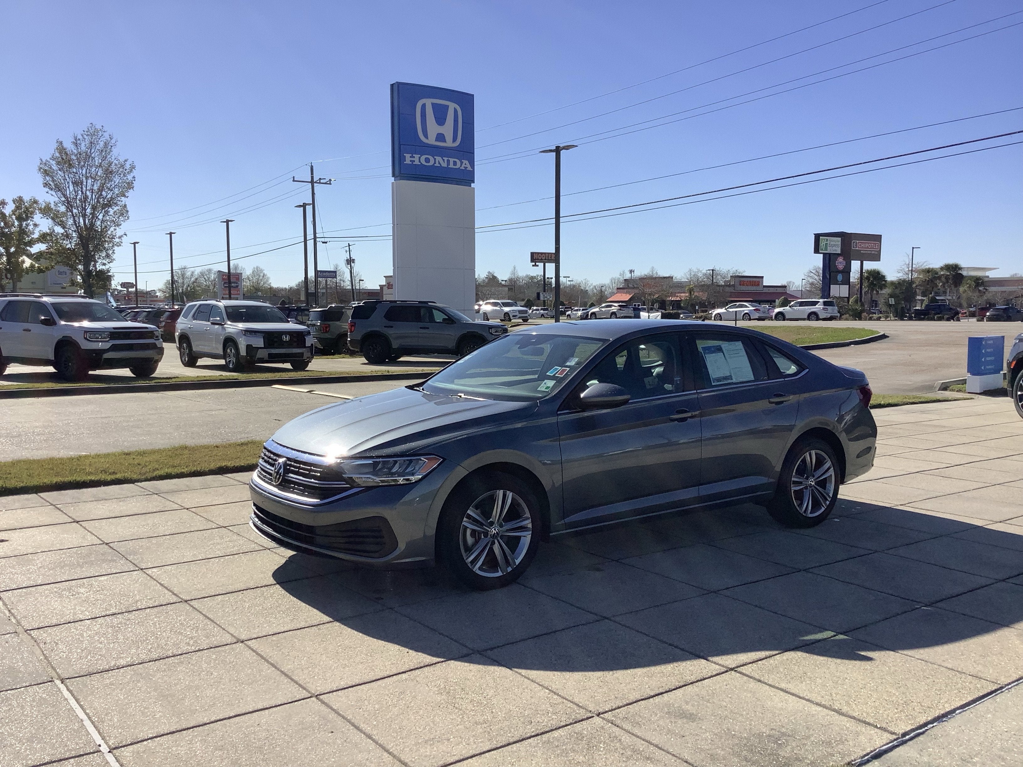 Wireless Phone Connectivity, Window Grid Diversity Antenna, Wheels: 17 Twin 5-Spoke Silver Painted Alloy, VW Car-Net Safe & Secure 5-year Tracker System, V-Tex Leatherette Seat Trim, Trunk Rear Cargo Access, Trip Computer, Travel Assist (semi-automated driving assistance), Transmission: 8-Speed Automatic w/Tiptronic, Transmission w/Driver Selectable Mode. This Volkswagen Jetta has a dependable Intercooled Turbo Regular Unleaded I-4 1.5 L/91 engine powering this Automatic transmission.*These Packages Will Make Your Volkswagen Jetta SE The Envy of Your Friends *Torsion Beam Rear Suspension w/Coil Springs, Tires: 17 All-Season, Strut Front Suspension w/Coil Springs, Steel Spare Wheel, Smart Device Integration, Single Stainless Steel Exhaust, Side Impact Beams, Security System Pre-Wiring, Seats w/Leatherette Back Material, Remote Releases -Inc: Power Cargo Access, Remote Keyless Entry w/Integrated Key Transmitter, Illuminated Entry, Illuminated Ignition Switch and Panic Button, Redundant Digital Speedometer, Rear Traffic Alert, Rear Map Lights, Rear Cupholder, Rear Child Safety Locks, Rain Detecting Variable Intermittent Wipers, Radio: MIB3 Composition Color w/6.5 Touchscreen -inc: AM/FM radio w/USB-C, Bluetooth® connectivity (for compatible devices), capability for in-vehicle 4G LTE enabled Wi-Fi (cellular data plan required; includes limited trial), capability for VW Car-Net services (capabilities for certain services vary; requires enrollment or subscription), App-Connect smartphone integration (w/Apple CarPlay, Android Auto and MirrorLink) via USB and USB-C enhanced charging, up to 45W (for compatible devices), Radio w/Seek-Scan, Clock, Speed Compensated Volume Control, Steering Wheel Controls and Radio Data System, Proximity Key For Doors And Push Button Start.* Stop By Today *Come in for a quick visit at Team Honda, 6363 Siegen Ln, Baton Rouge, LA 70809 to claim your Volkswagen Jetta!