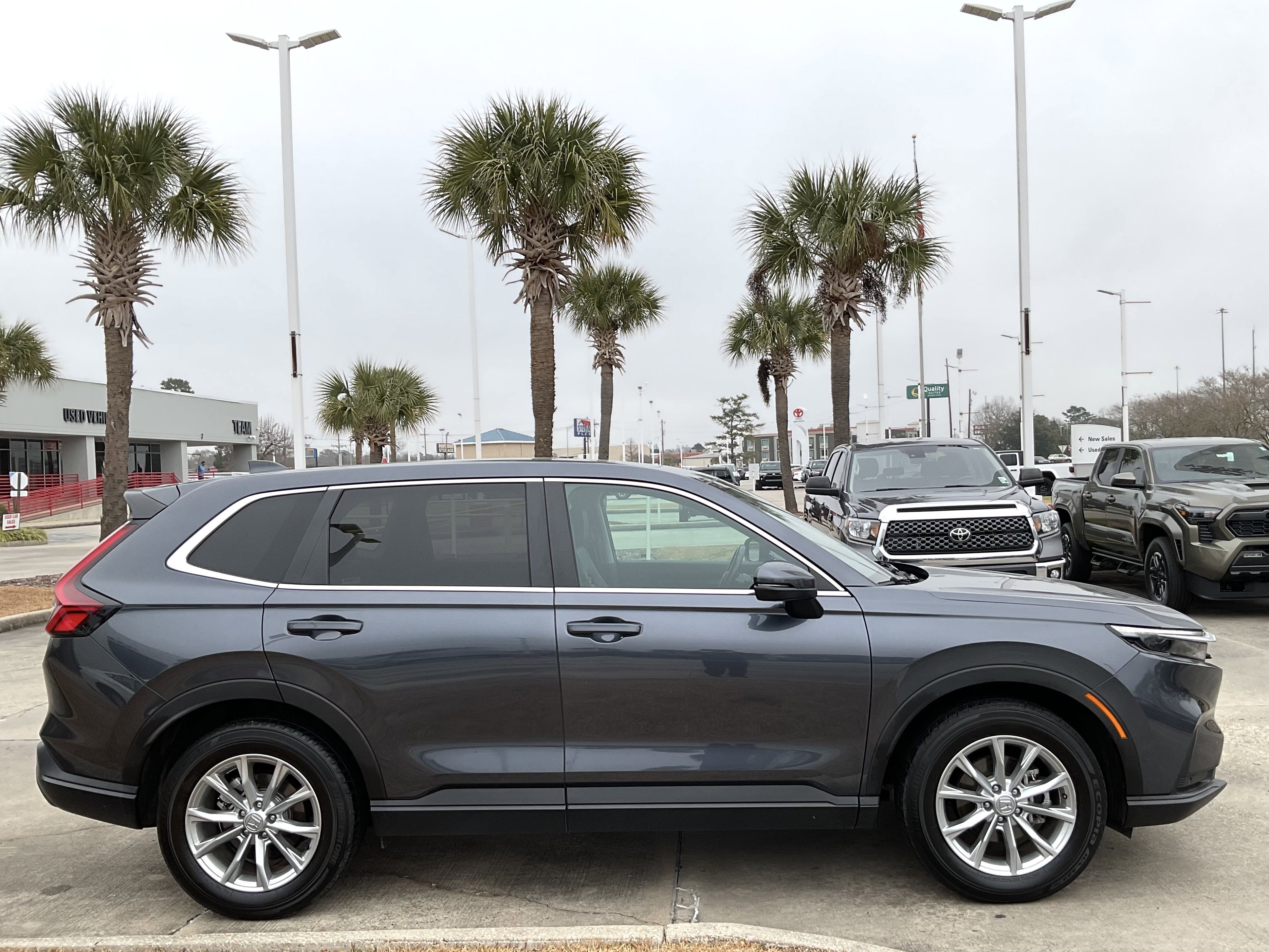 Wireless Phone Connectivity, Wheels: 18 Sparkle Silver Metallic, Valet Function, Trunk/Hatch Auto-Latch, Trip Computer, Transmission: Continuously Variable Automatic -inc: normal, econ and snow dynamic drive modes, Transmission w/Driver Selectable Mode, Traffic Jam Assist, Tires: 235/60R18 103H, Tailgate/Rear Door Lock Included w/Power Door Locks. This Honda CR-V has a powerful Intercooled Turbo Regular Unleaded I-4 1.5 L/91 engine powering this Variable transmission. Experience a Fully-Loaded Honda CR-V EX-L Strut Front Suspension w/Coil Springs, Steel Spare Wheel, Speed Sensitive Variable Intermittent Wipers, Smart Device Integration, Side Impact Beams, Seats w/Leatherette Back Material, Remote Releases -Inc: Power Cargo Access, Remote Keyless Entry w/Integrated Key Transmitter, Illuminated Entry, Illuminated Ignition Switch and Panic Button, Rear Cupholder, Rear Cross Traffic Monitor (CTM)/Low Speed Braking Control, Rear Child Safety Locks, Radio: 320-Watt AM/FM/HD/SiriusXM Audio System -inc: 9 color touchscreen, 8 speakers, Apple CarPlay and Android Auto compatibility, wireless Apple CarPlay compatibility, wireless Android Auto compatibility, Bluetooth® streaming audio and USB-A 2.5A smartphone/audio interface in front seats, All SiriusXM services require a subscription, sold separately by SiriusXM after the trial period, If you decide to continue service, the plan you choose will automatically renew at the then-current rates, Fees and taxes apply, See the SiriusXM customer agreement and privacy policy at www.siriusxm.com for full terms and how to cancel, which includes calling 1-866-635-2349, Available in the 48 contiguous U.S, and D.C, Some services and features are subject to device capabilities and location restrictions, All fees, content and features are subject to change, Radio w/Seek-Scan, Clock, Speed Compensated Volume Control, Steering Wheel Controls, Voice Activation and Radio Data System, Quasi-Dual Stainless Steel Exhaust, Proximity Key For Doors And Push Button Start, Power Rear Windows and Fixed 3rd Row Windows, Power Liftgate Rear Cargo Access, Power Door Locks w/Autolock Feature, Power 1st Row Windows w/Front And Rear 1-Touch Up/Down, Permanent Locking Hubs. Stop By Today Come in for a quick visit at Team Toyota - Baton Rouge, 1788 Oneal Ln, Baton Rouge, LA 70816 to claim your Honda CR-V!